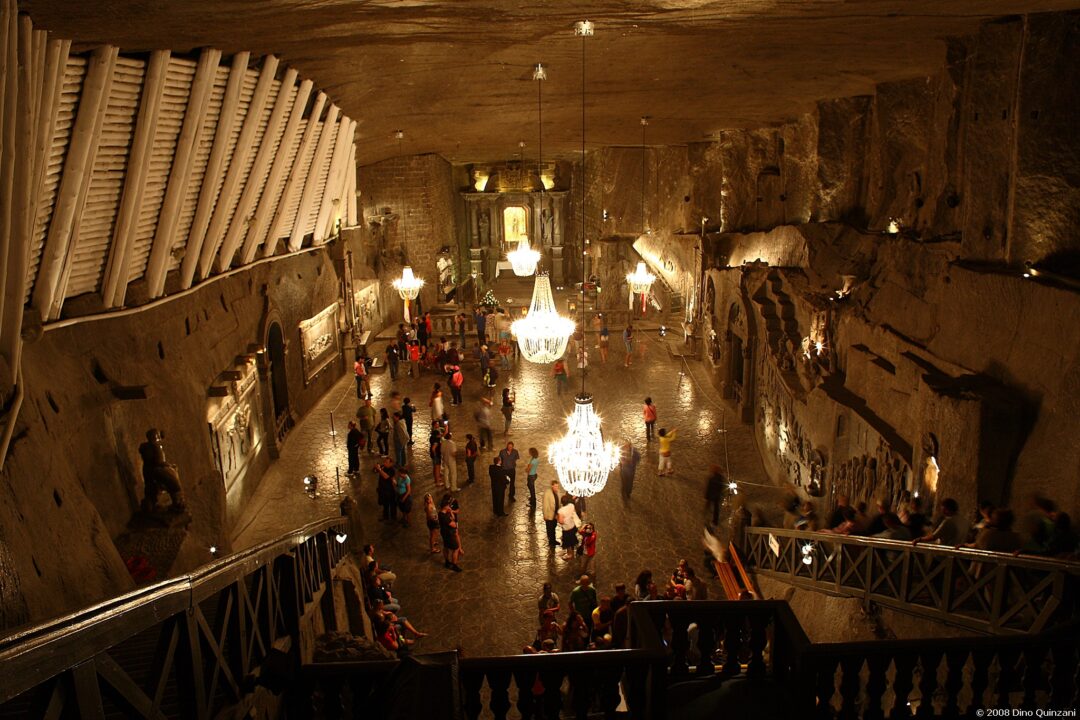 La miniera di sale di Wieliczka, in funzione dal XIII secolo fino al 1996, offre 3,5 km di percorsi per le visite turistiche in cui osservare statue scolpite direttamente nel sale dai minatori, candelieri realizzati con cristalli di sale, stanze decorate, cappelle e laghi sotterranei.