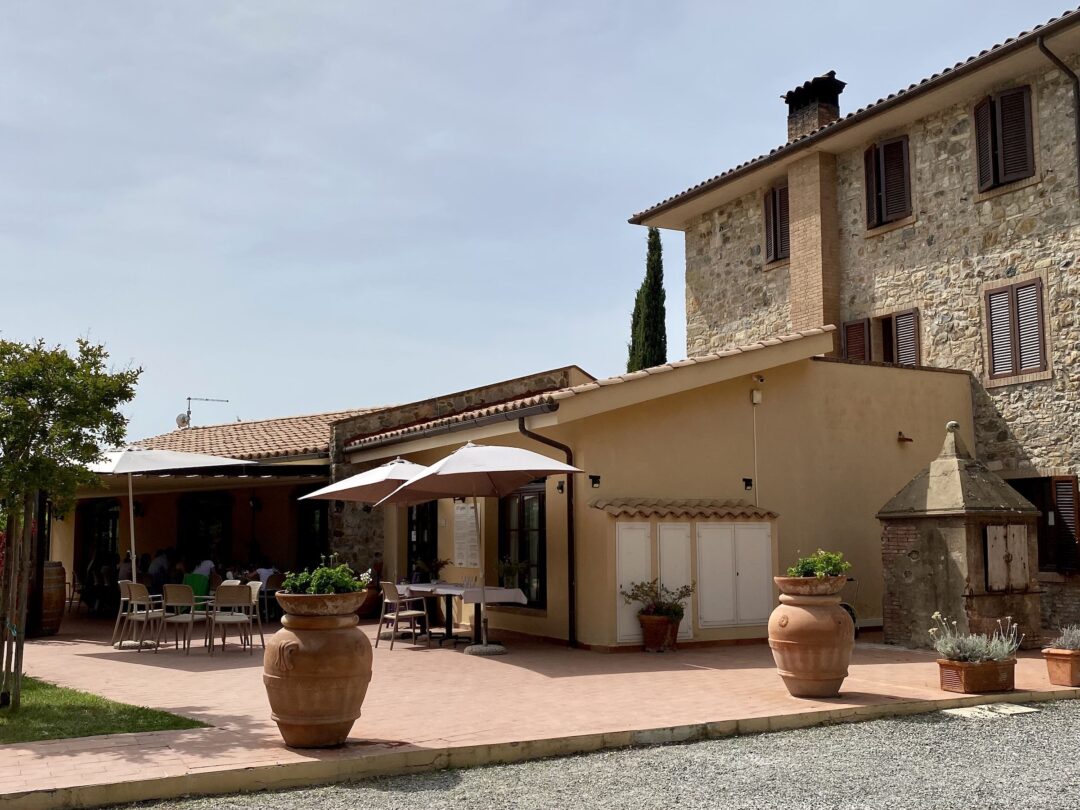 Claudia è un vulcano di energie e ci racconta che le sue attività spaziano dall’accoglienza in agriturismo (che conta tre camere e tre appartamenti), alla cantina come sommelier, passando per le degustazioni, la vigna e il ristorante di famiglia, il Del Duca in centro a Volterra. Riavvolgendo il nastro dei ricordi, ci dice che nessuno avrebbe mai scommesso sulla produzione del vino su questi terreni argillosi e salini (siamo vicini alle Saline di Volterra) che danno vita a un vino una forte mineralità. Invece la sfida ha portato ottimi risultati, nonostante i terreni abbiano bisogno di essere lavorati molto e in estate scarseggi l’acqua.