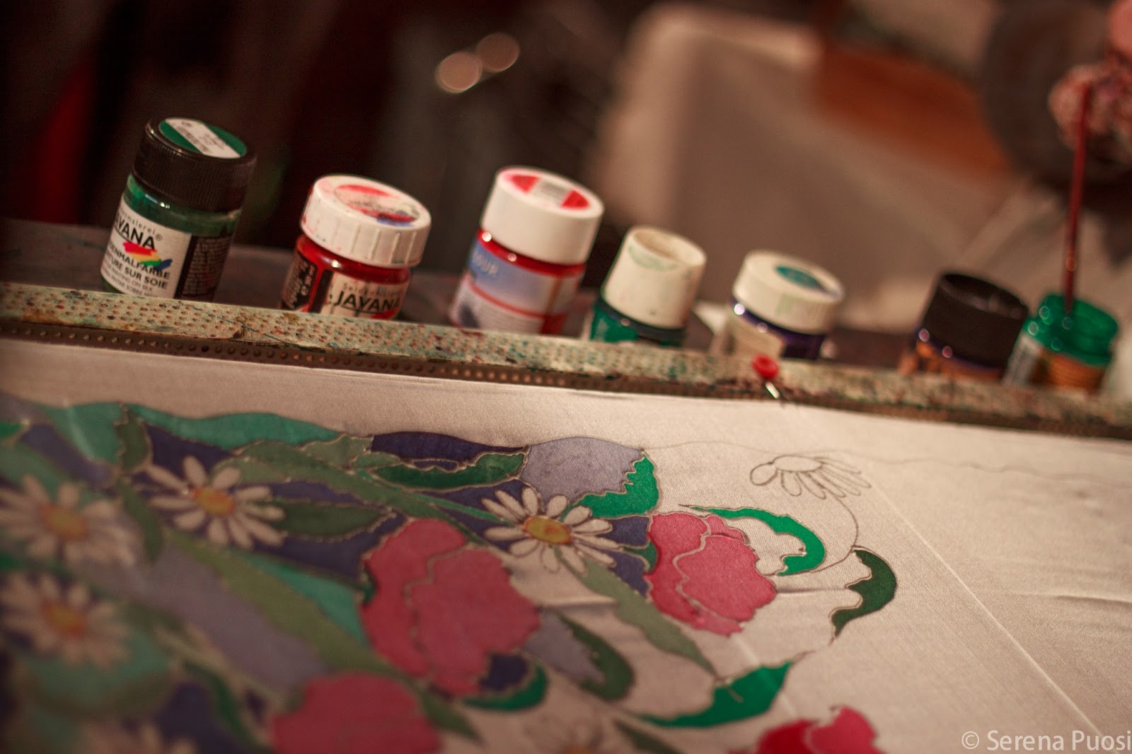 Nessuno vive in questo posto: i portoni aperti sono solo quelli delle attività commerciali. E, inutile dirlo, sono tutti personaggi che sembrano usciti da un altro secolo. C’è la professoressa tedesca che si è messa a dipingere sulla seta e crea foulard e tele uniche al mondo, che parla con accento teutonico inframezzato da parole in dialetto piemontese, che ci fa entrare tutti pigiati nella sua minuscola bottega per farci vedere quanta pazienza ci vuole a lavorare come fa lei.